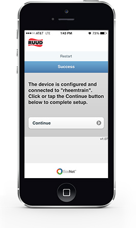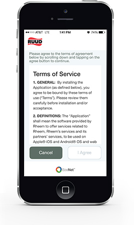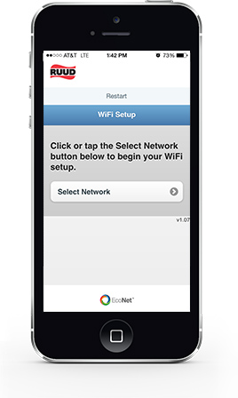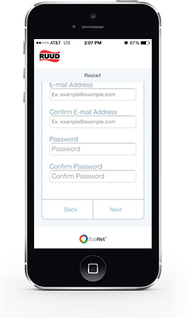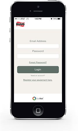 - Download the free “EcoNet” App from Ruud available at the iTunes App or Google Play stores.