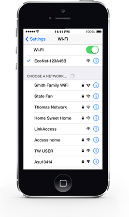 Before tapping “Next,” go to your WiFi settings and connect to EcoNet’s WiFi Network. |