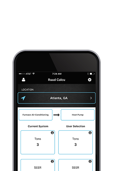 The Ruud Calcu Save App provides on-the-go access for contractors to calculate cost savings for homeowners by comparing residential HVAC system replacement options.